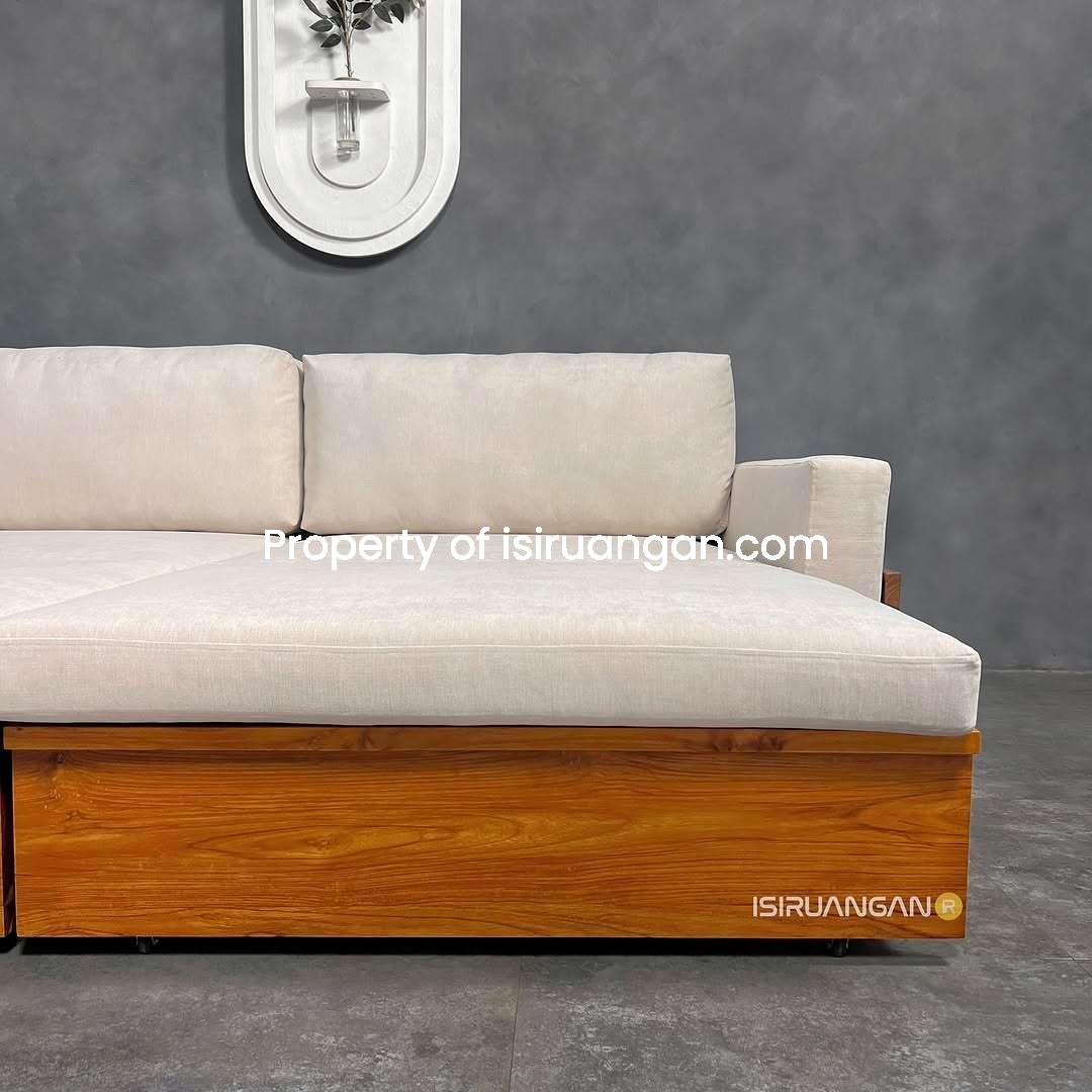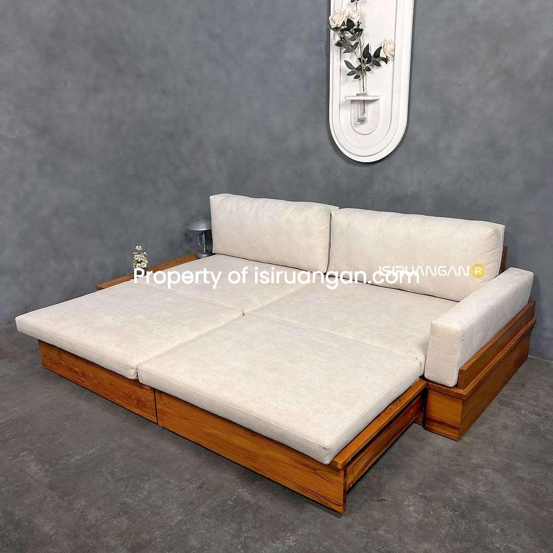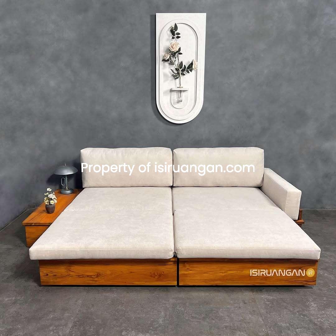 Sofa Bed Deasty Minimalis dengan model minimalis ini memang sangat tepat untuk mengisi ruangan anda. Kami menghadirkannya dengan material rangka Kayu Jati pilihan.