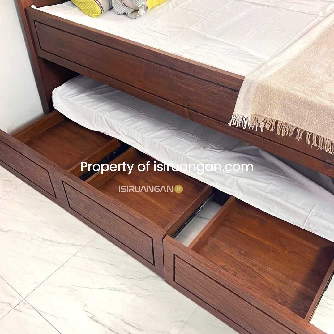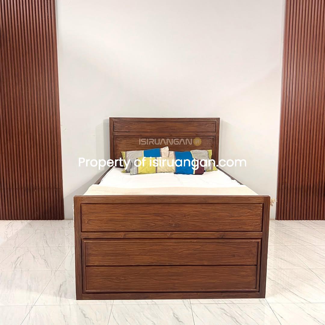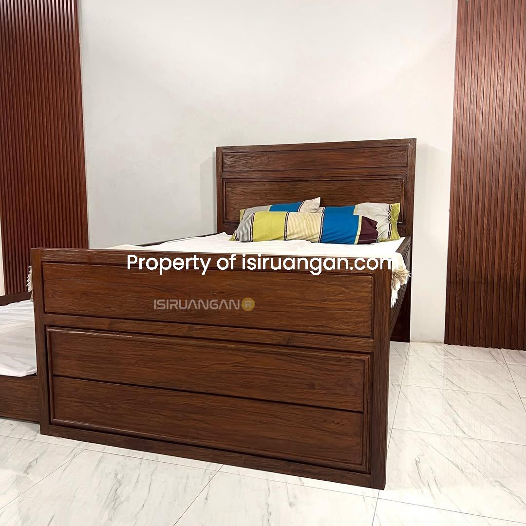 Tempat Tidur dengan model minimalis ini memang sangat tepat untuk mengisi ruangan anda. Kami menghadirkannya dengan material rangka kayu jati solid pilihan.